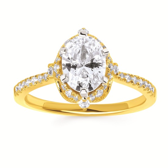 Engagement Ring Forever ElegantĀ® 1/4 Ctw. Diamond Semi Mount shown with 1.50 Ct. Oval Center Diamond in 14K Gold