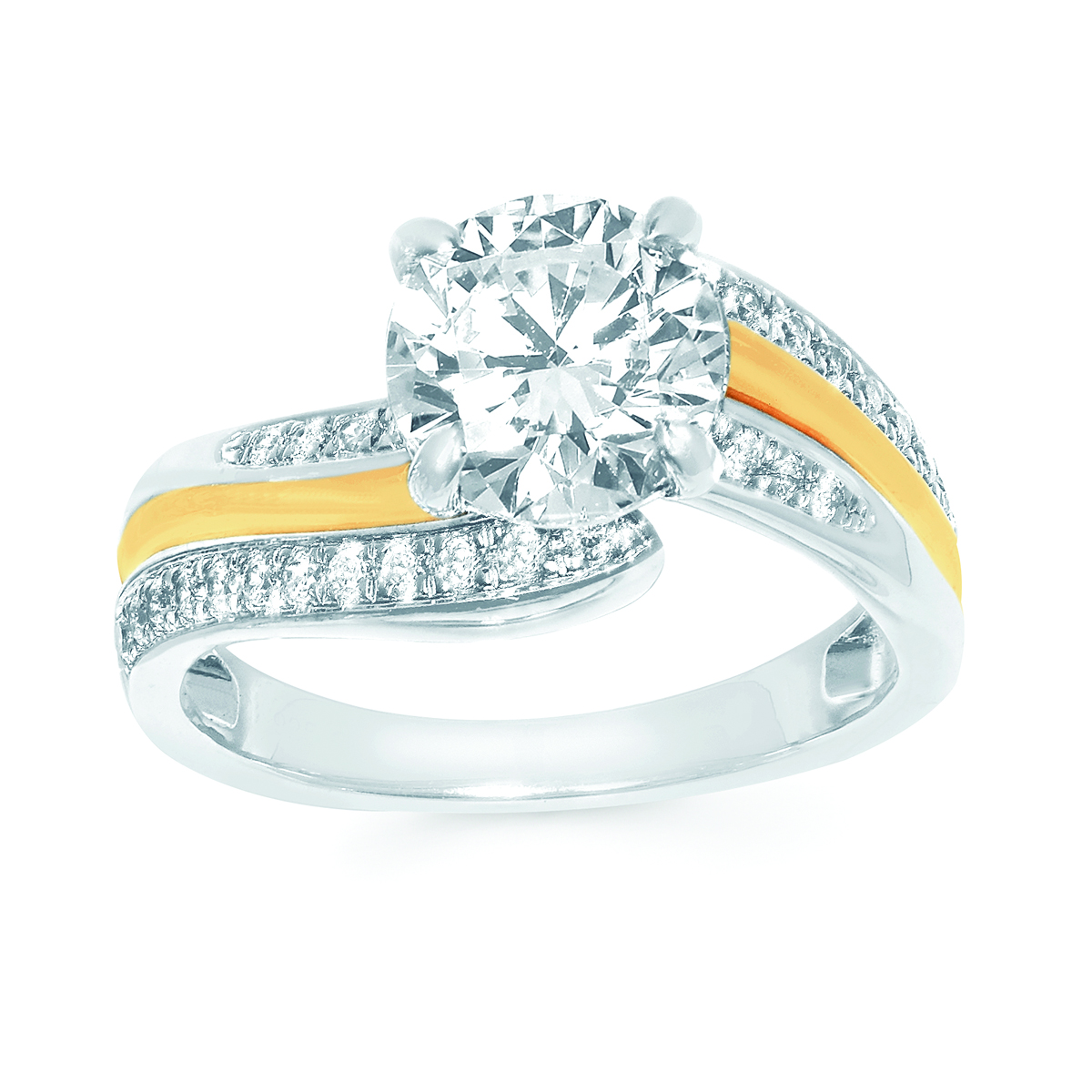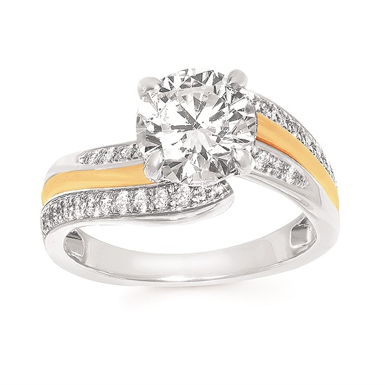 Engagement Ring Modern Bridal: 1/4 Ctw. Diamond Semi Mount shown with 2 Ct. Round Center Diamond in 14K Gold